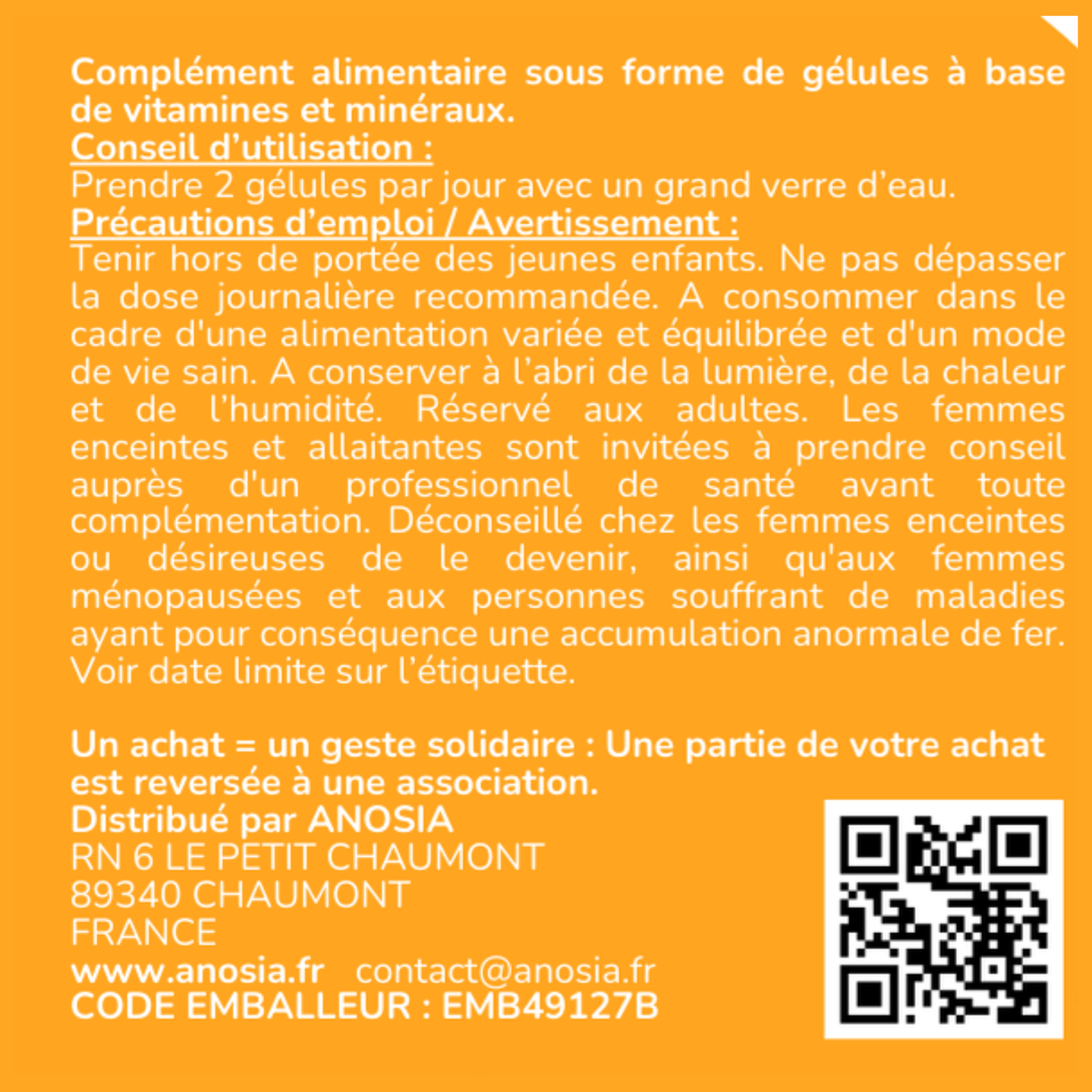 - Les femmes enceintes et allaitantes sont invitées à prendre l’attache d’un professionnel de santé avant toute complémentation.